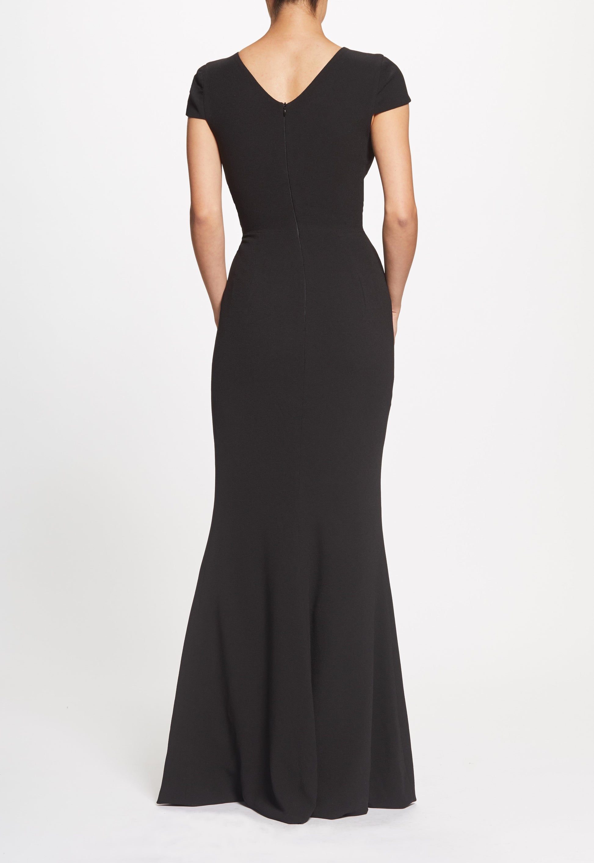 This stunning dress features a body-con silhouette and short sleeves, perfect for a sleek and sophisticated look. The high slit adds a bold touch.