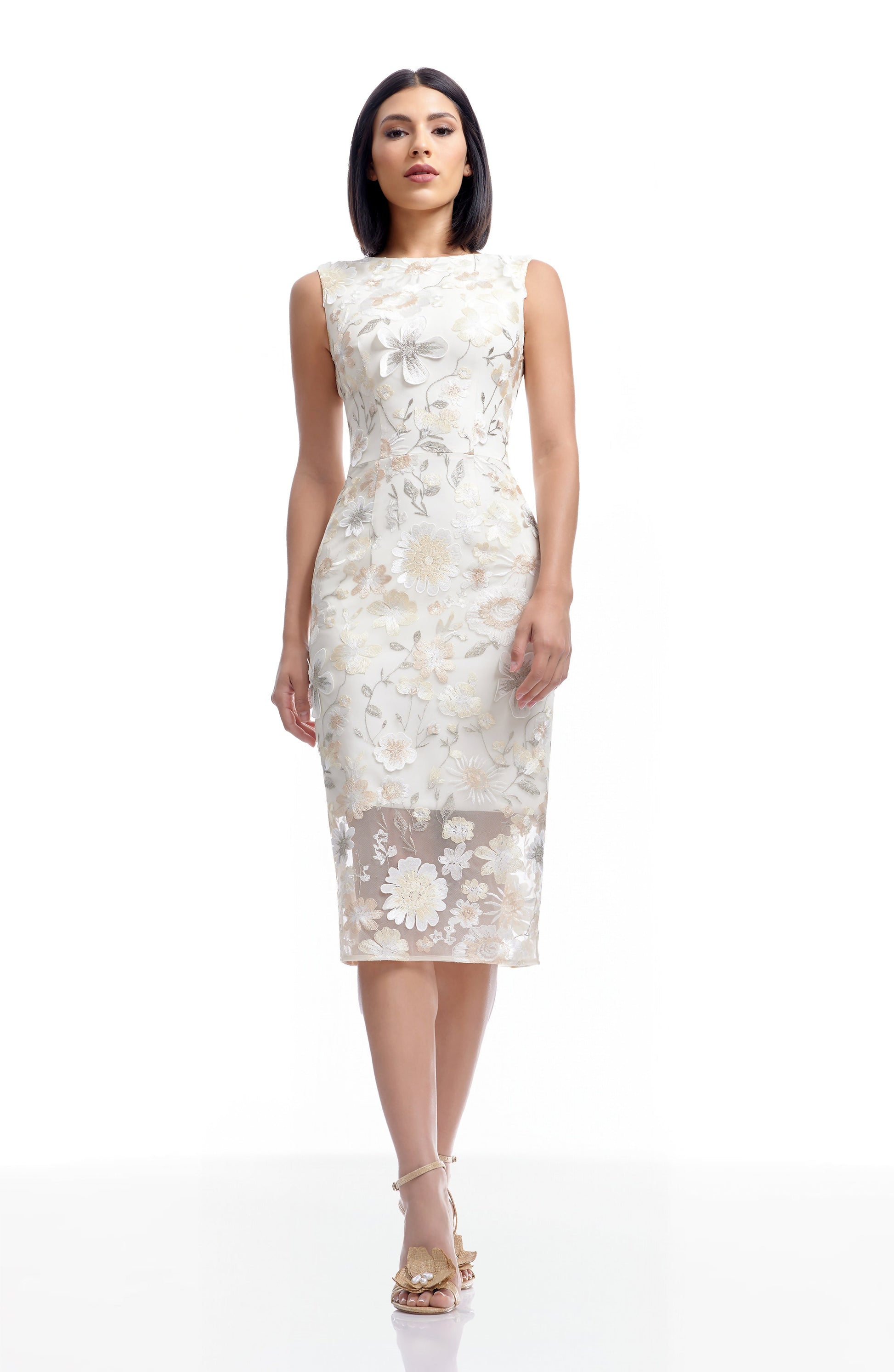 - 3D embroidered floral on tulle, short lined in non-stretch CDC