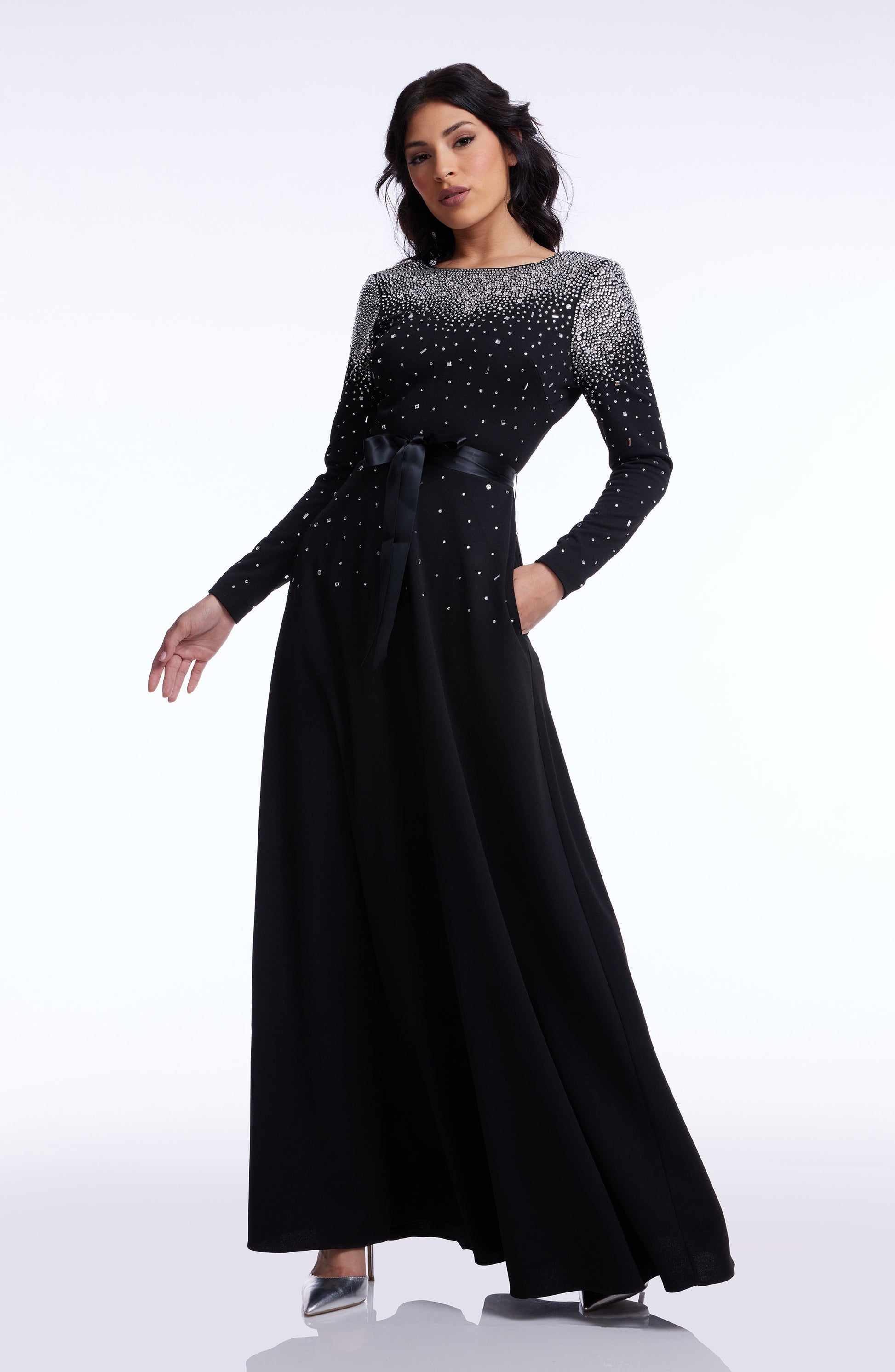 The Acacia Gown showcases a sophisticated round neck, long sleeves, and a fit-and-flare silhouette for timeless elegance. Crafted from high-quality materials, this full-length gown enhances your natural shape while offering a comfortable fit. Perfect for formal occasions, this gown is a stunning choice for the fashion-forward individual.