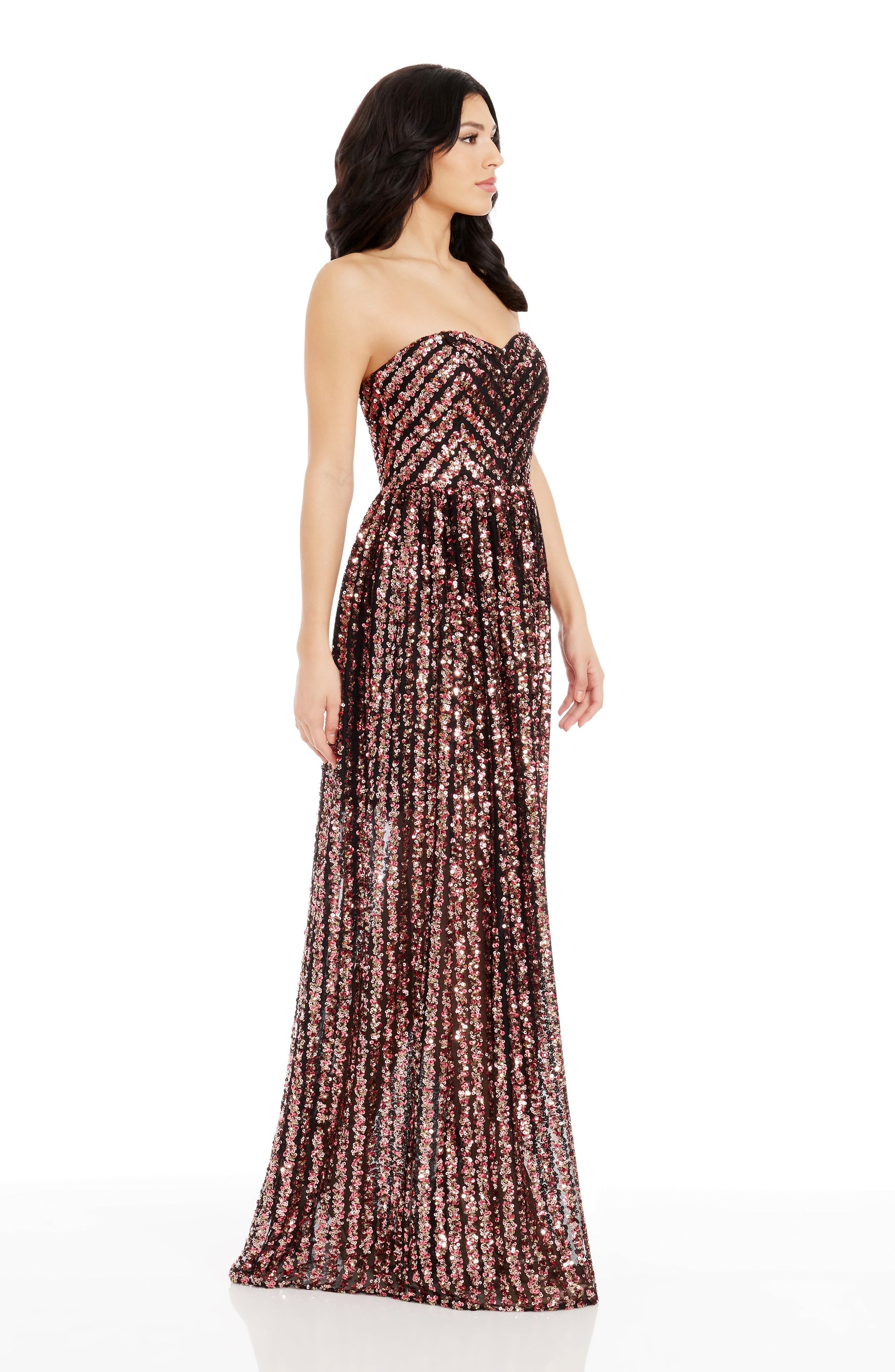 Turn heads in the Sequined Audrina dress, an elegant choice for any formal occasion. This strapless, floor-length gown shimmers with intricate sequins, creating a flawless, radiant look without a slit. Crafted from luxurious fabrics, the Audrina dress offers timeless sophistication and comfort, ensuring you make a stunning impression all night long.