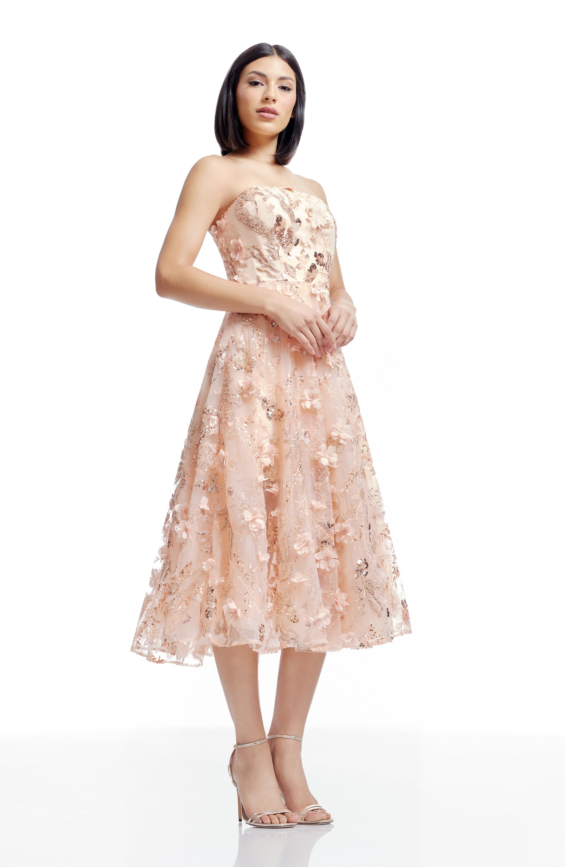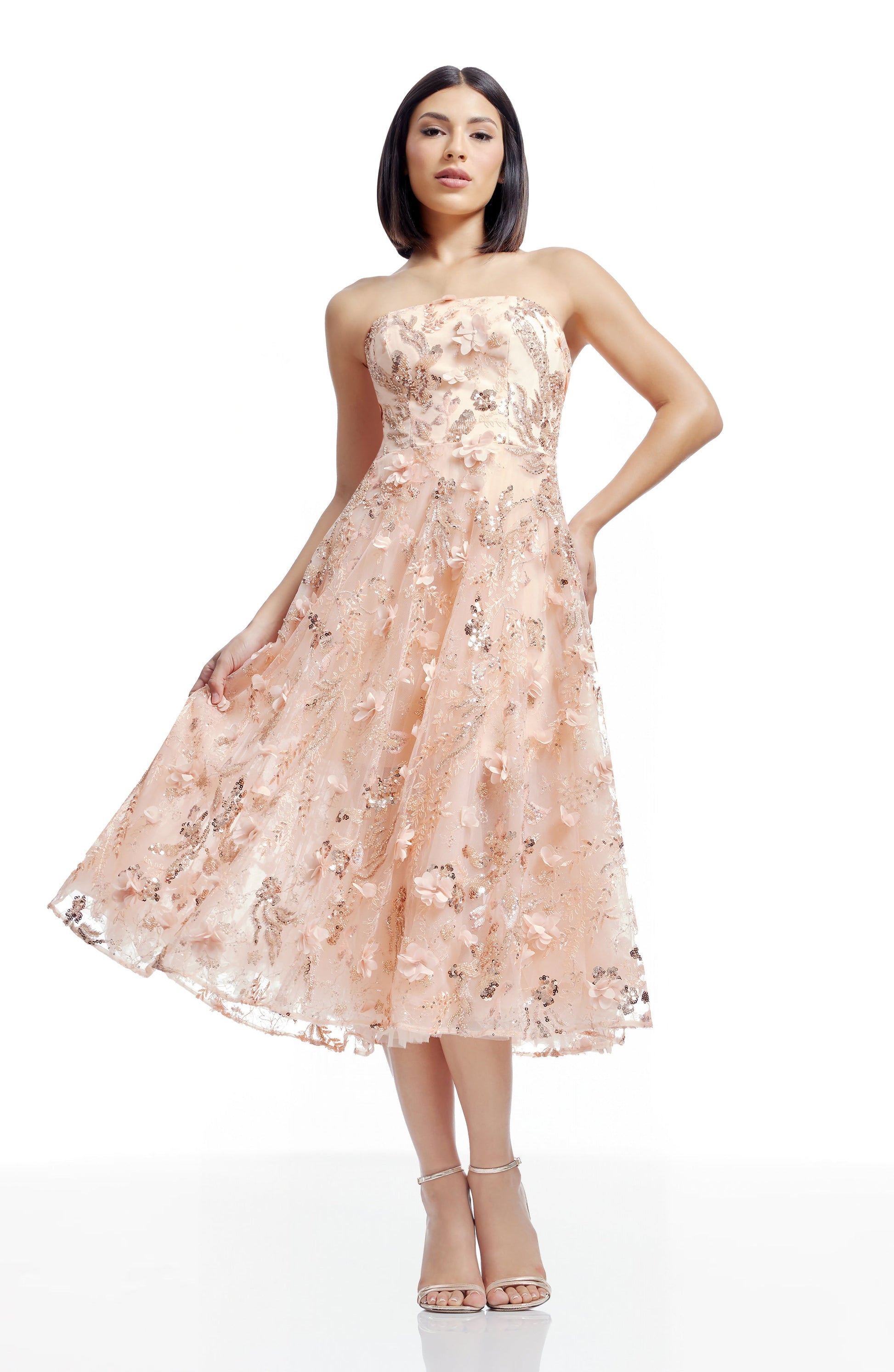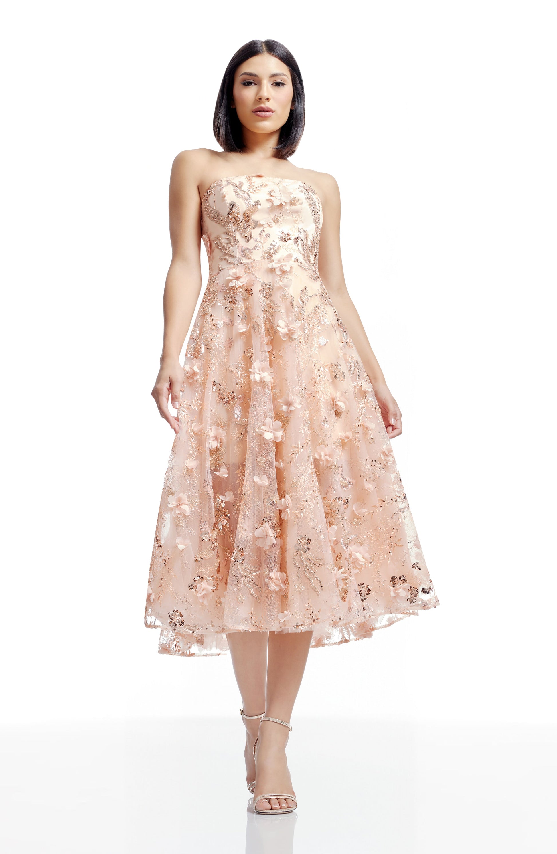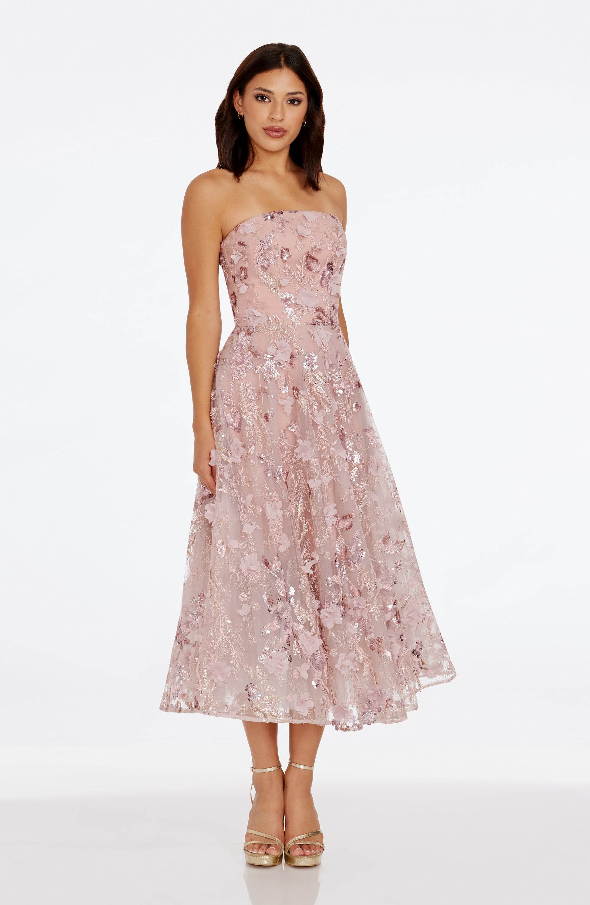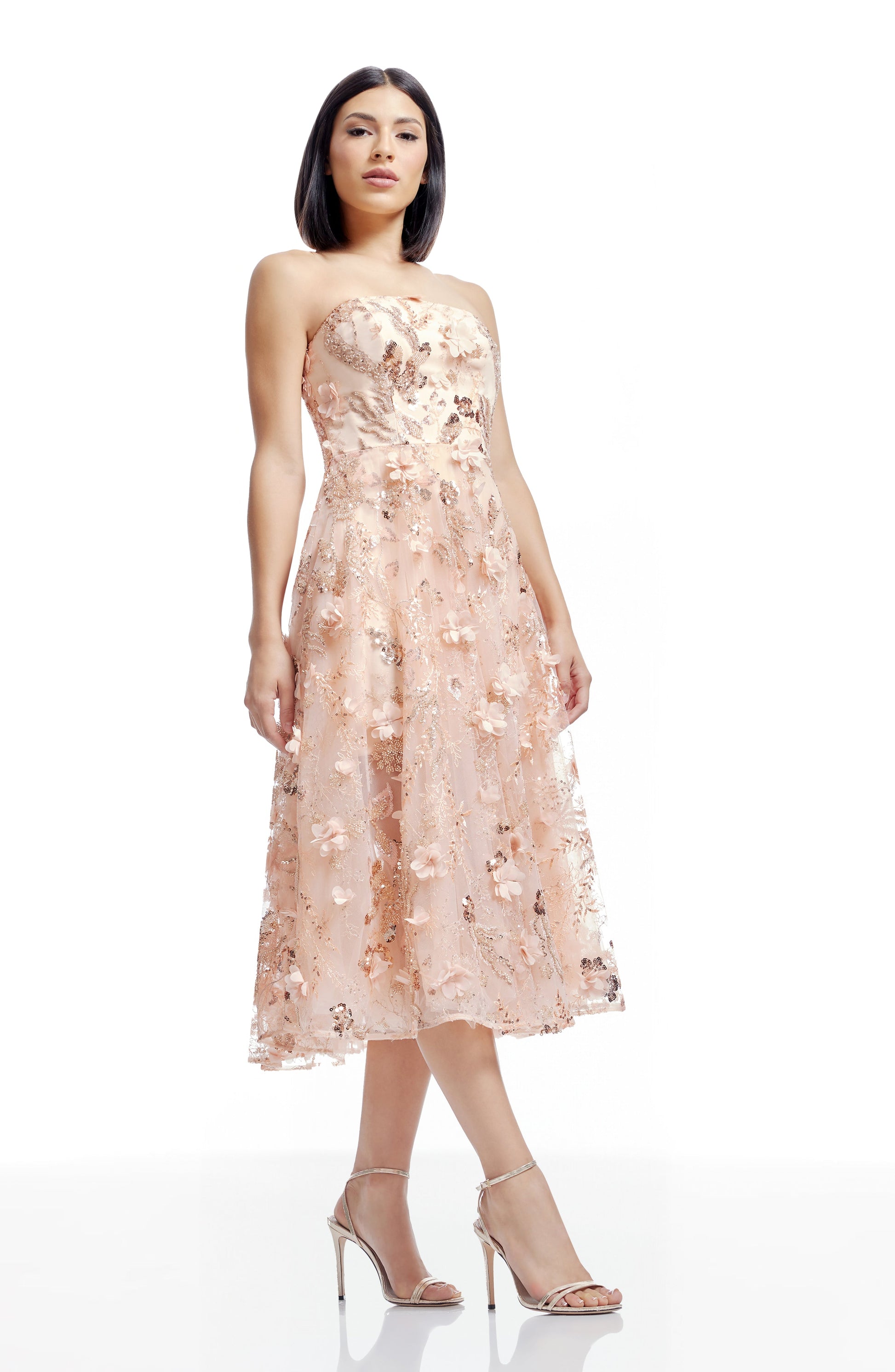 Experience elegance and sophistication with the Kailyn Dress, a midi dress designed to flatter with its strapless bustier fit and flare design.