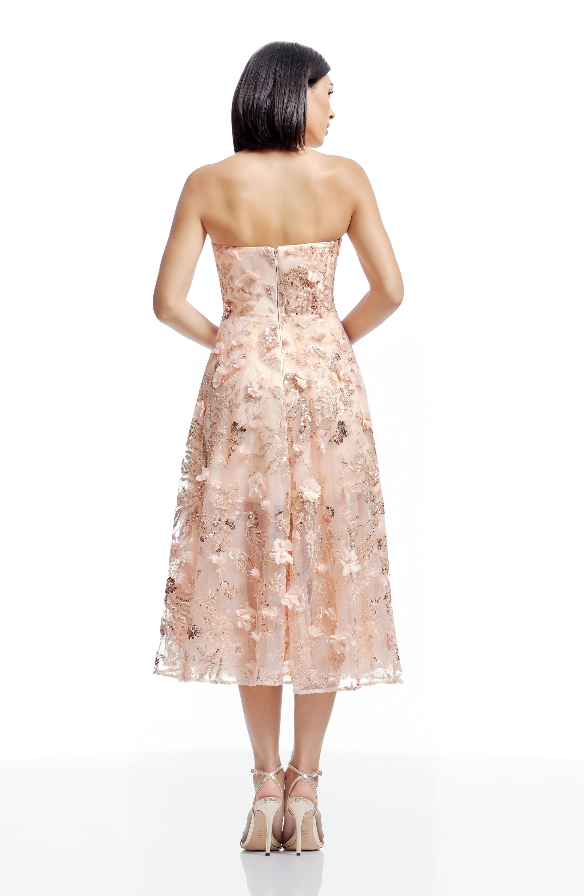 - Center back invisible zipper with hook and eye and comes with removable adjustable straps