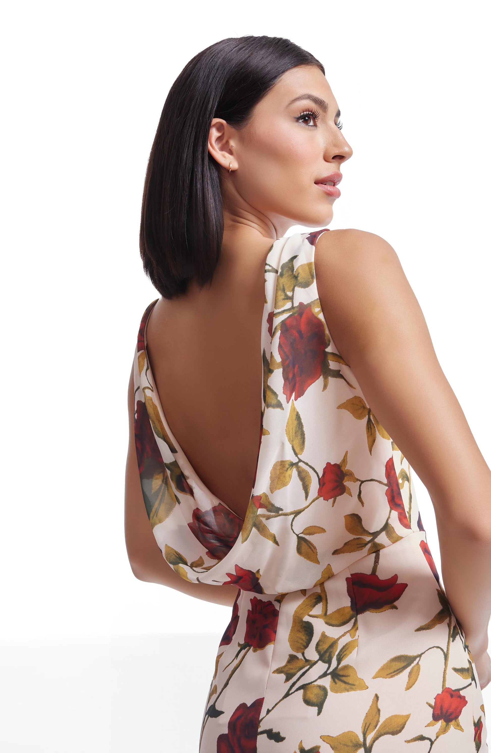 This mermaid maxi dress features a sleeveless design, round neckline, and plunging back neckline for a stylish and sophisticated look.
