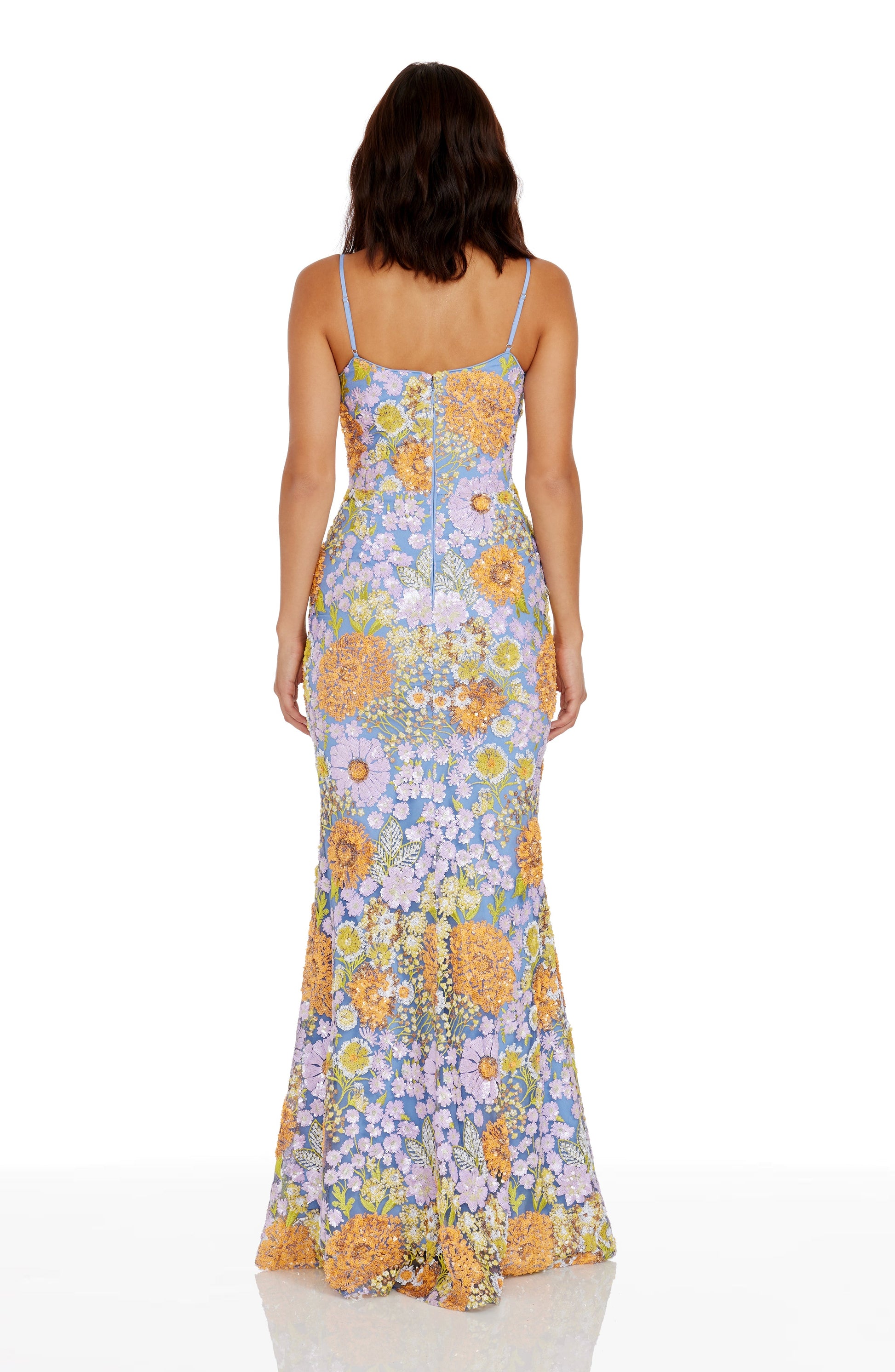 This elegant mermaid gown features a spaghetti strap design and V-neckline, that can be dressed up or down for any occasion.