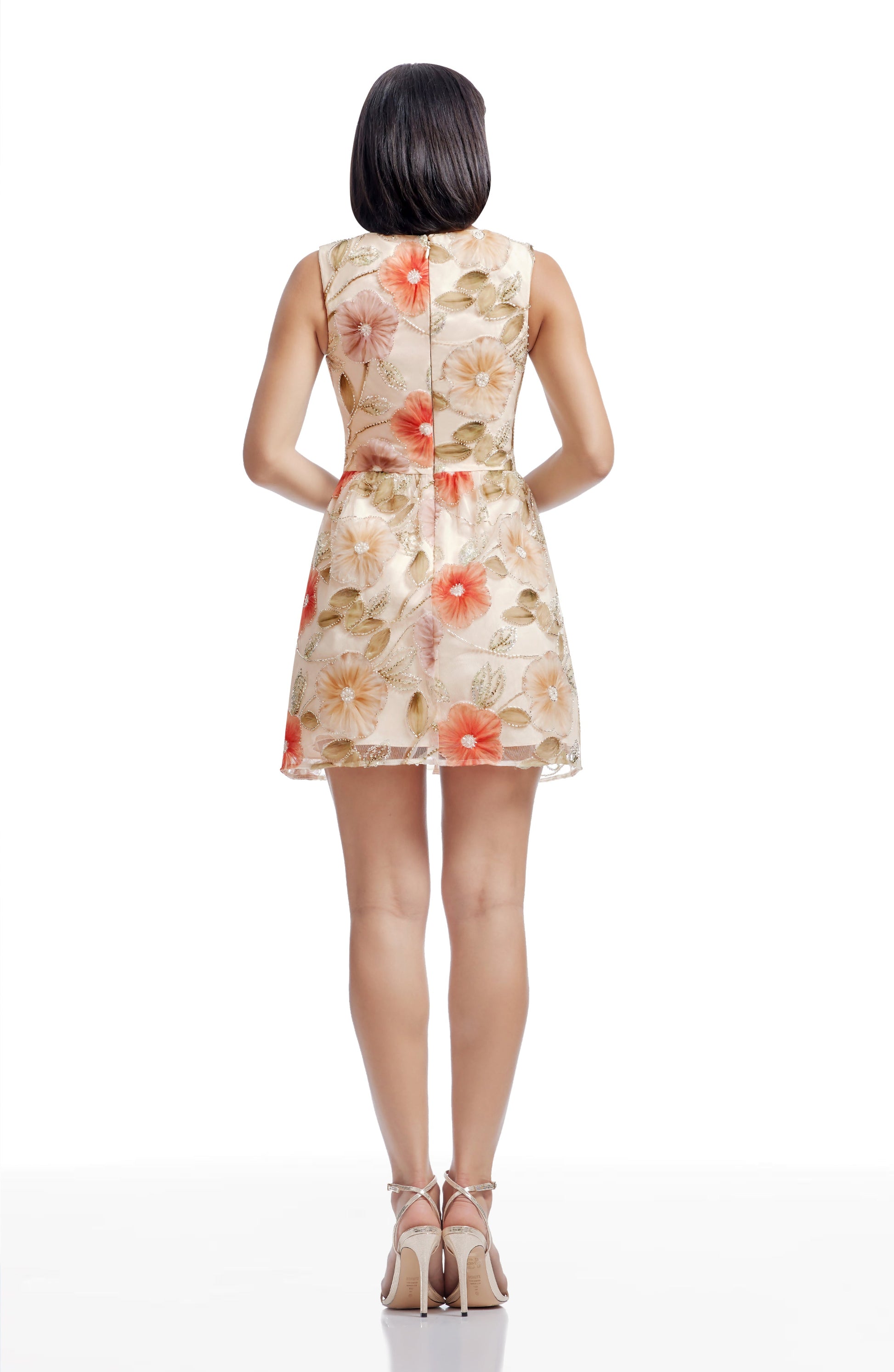 - High-quality printed floral fabric with beading, fully lined in non-stretch CDC