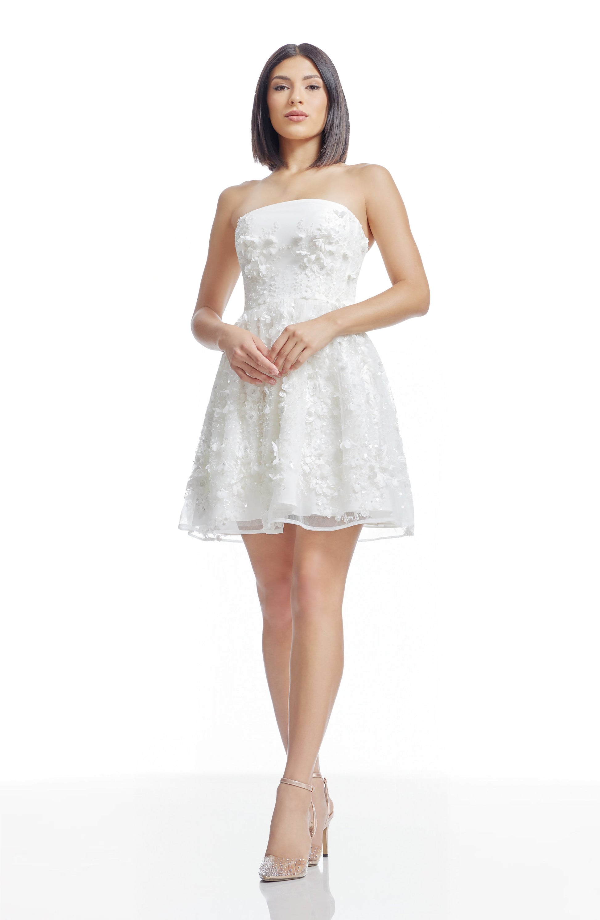 Experience the beauty of the Marilyn Dress, crafted with a strapless bustier and structured A-line design for a flawless and luxurious silhouette. Be the epitome of fun and flirty in this mini dress.