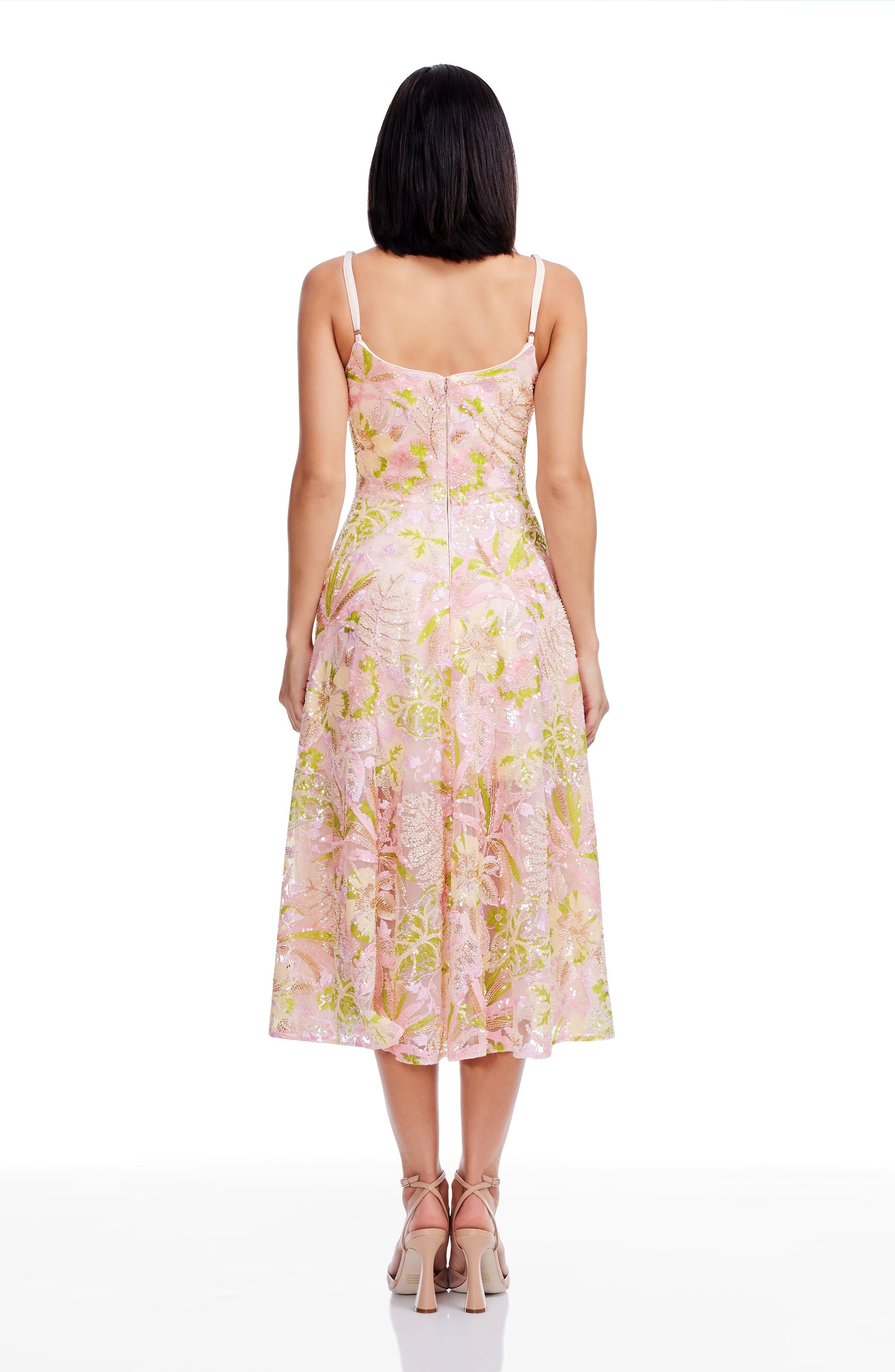 The Uma dress features a sweetheart bodice, a flattering fit and flare silhouette, and convenient pockets for a stylish, yet practical, look.