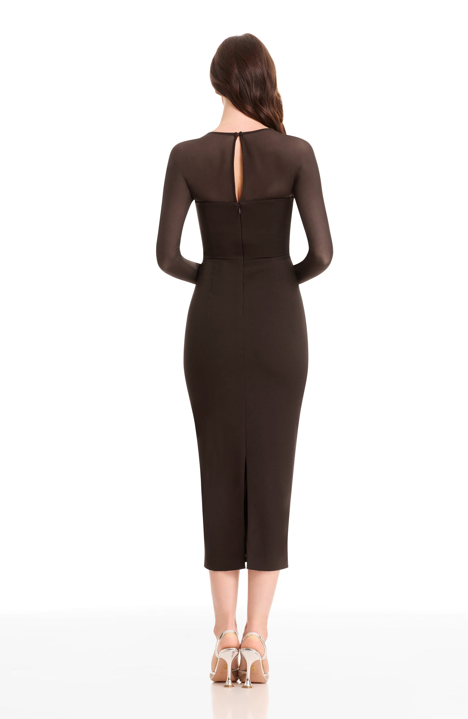 - Our 3086 crepe (stretchy) with sheer mesh yoke and sleeves