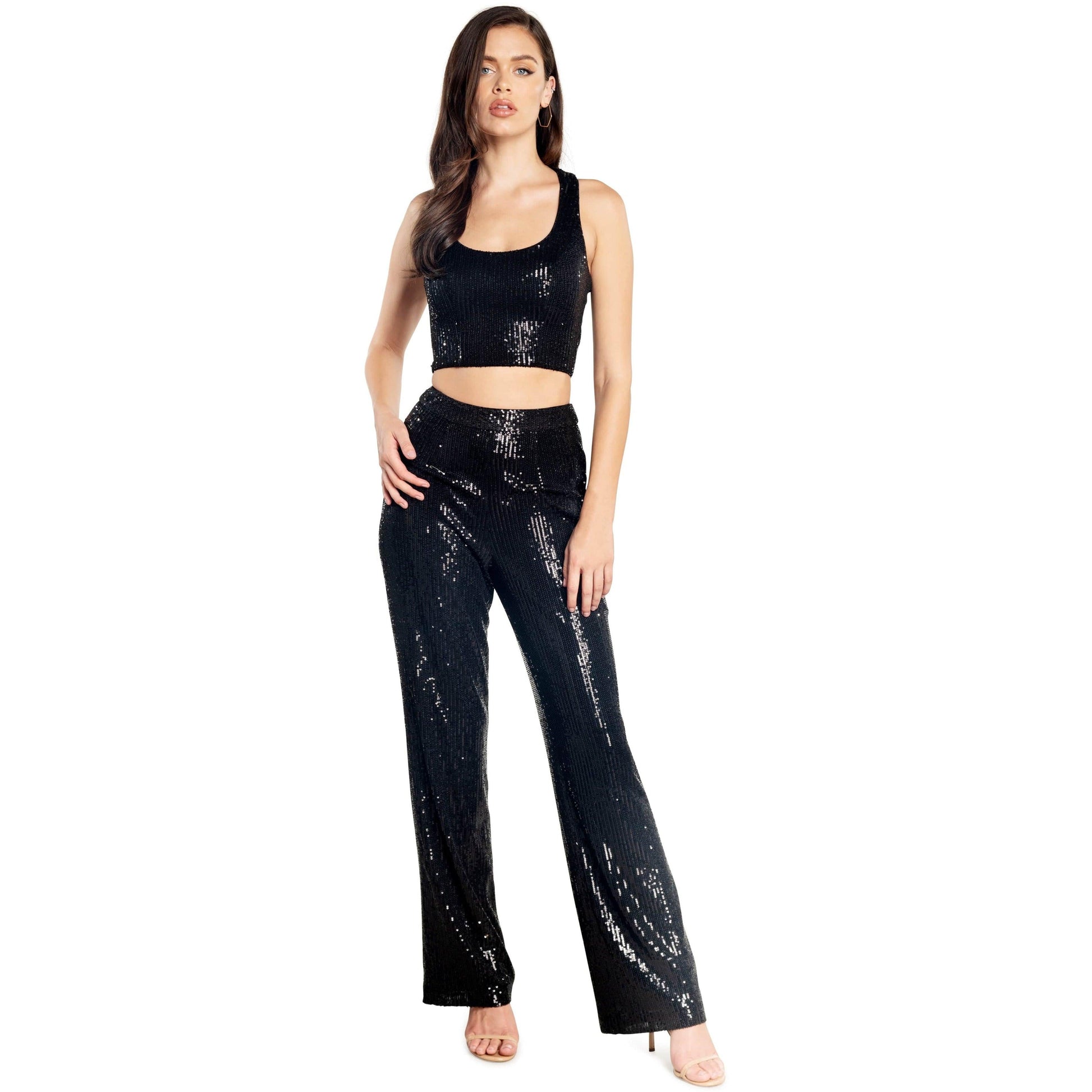 Sequin flair meets comfortable style with these pants. Our Dina pants are lined with soft knit lining and pair perfectly with the Zuri sequin top for a more dressed-up look or a vintage t-shirt for a casual yet eye-catching fit.